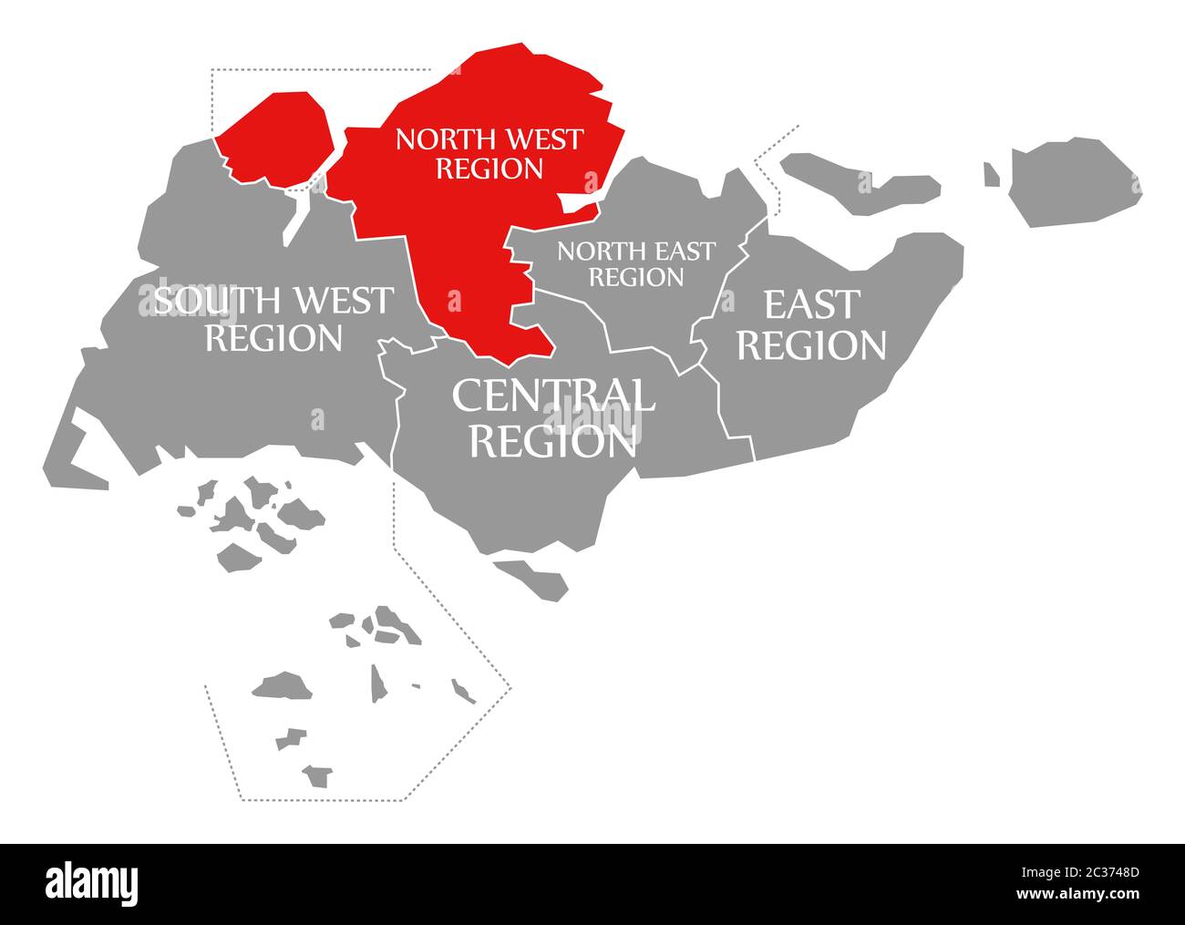 North West Region red highlighted in map of Singapore Stock Photo