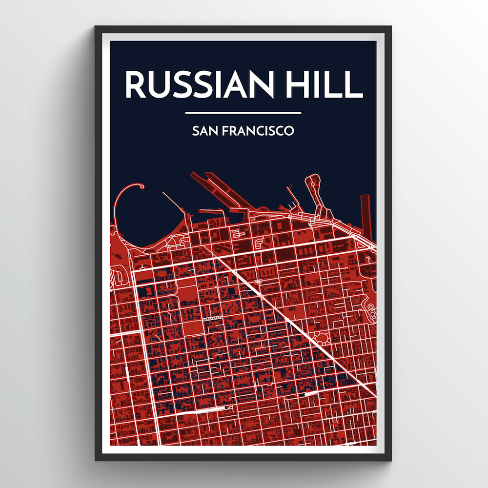 Framed Russian Hill San Francisco Map Art Print 12×18″ Traditional