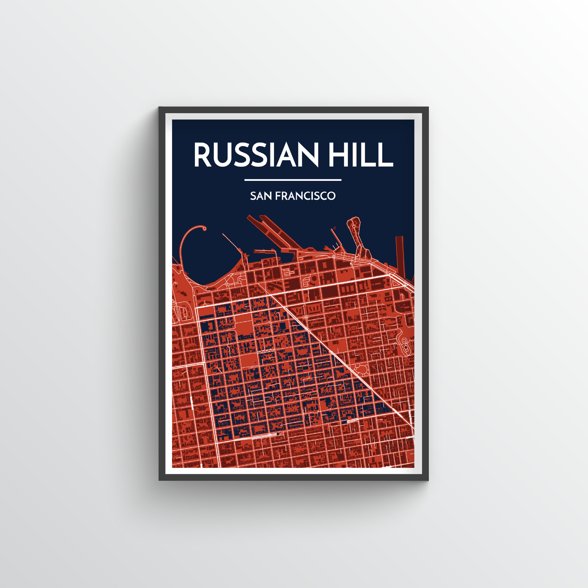 Framed Russian Hill San Francisco Map Art Print 12×18″ Traditional