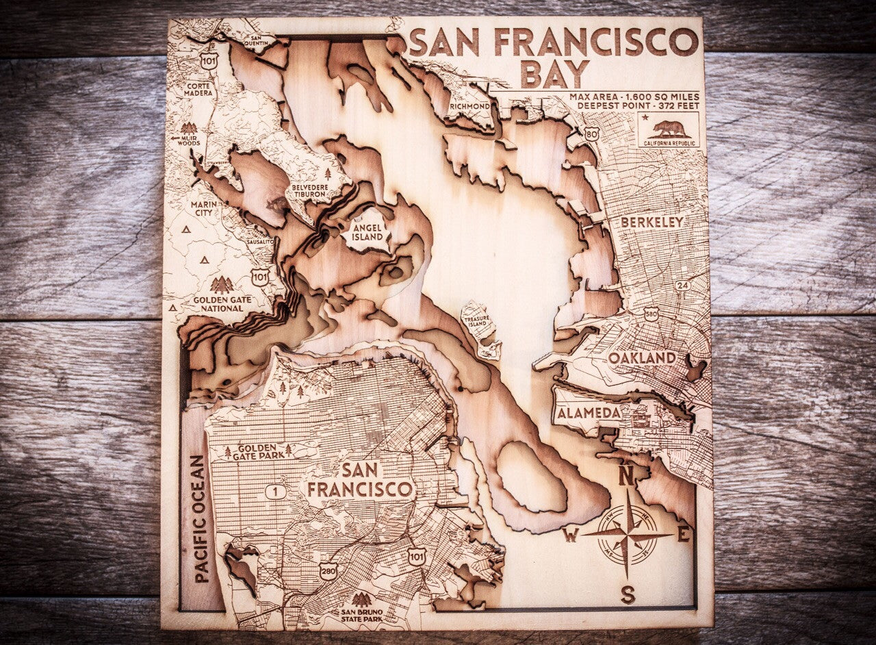 San Francisco Bay 3D Wood Map โ ARTISANS & agency