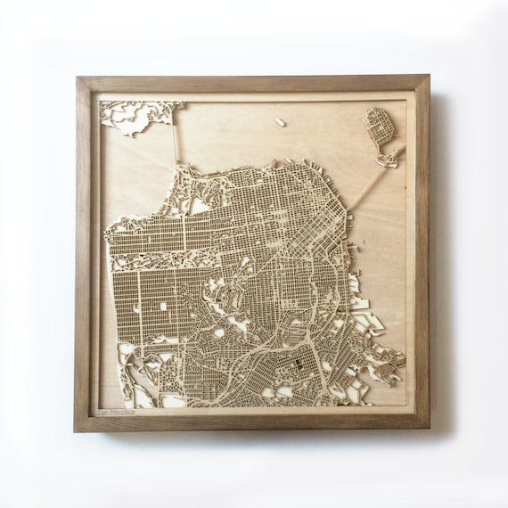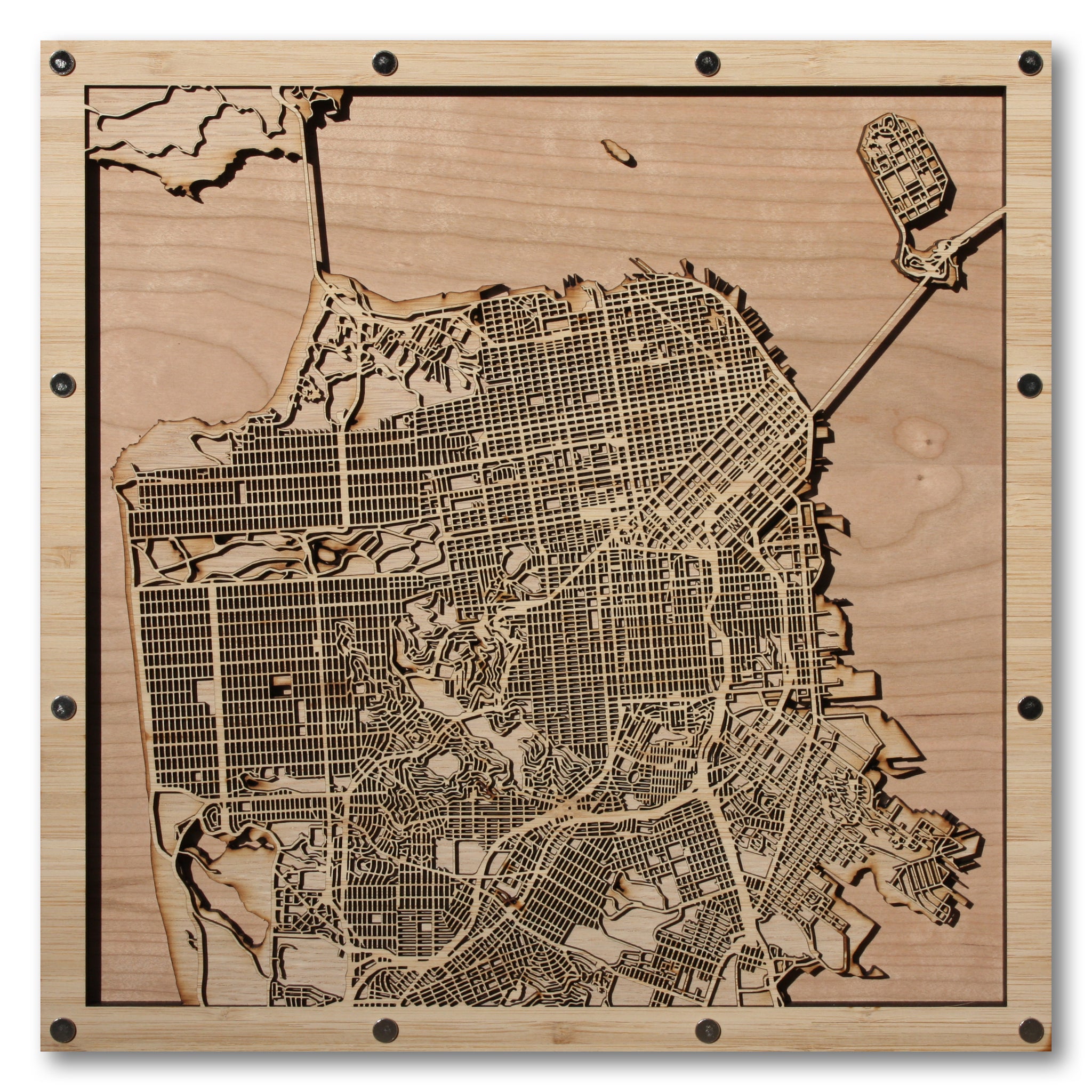 San Francisco Wooden Map Laser Cut Engraved Wood Gift CityWood
