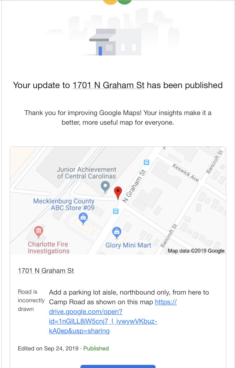 Please update maps in Charlotte NC to reflect new construction